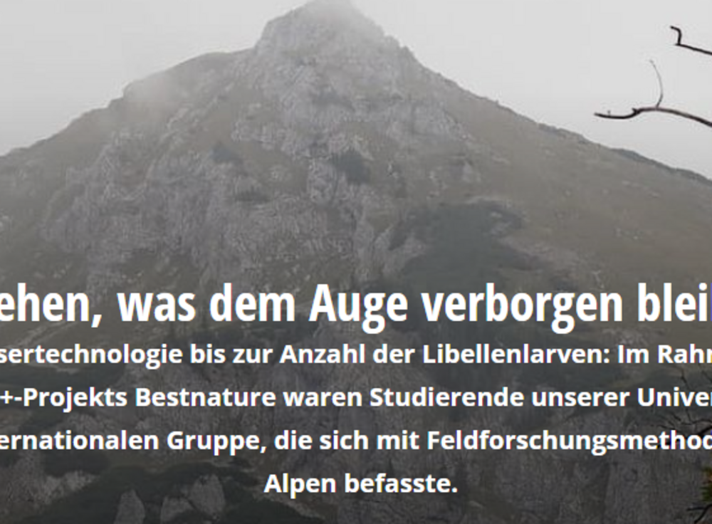 Von Lasertechnologie bis zur Anzahl der Libellenlarven: Im Rahmen des Erasmus+-Projekts Bestnature waren Studierende unserer Universität Teil einer internationalen Gruppe, die sich mit Feldforschungsmethoden in den Alpen befasste.