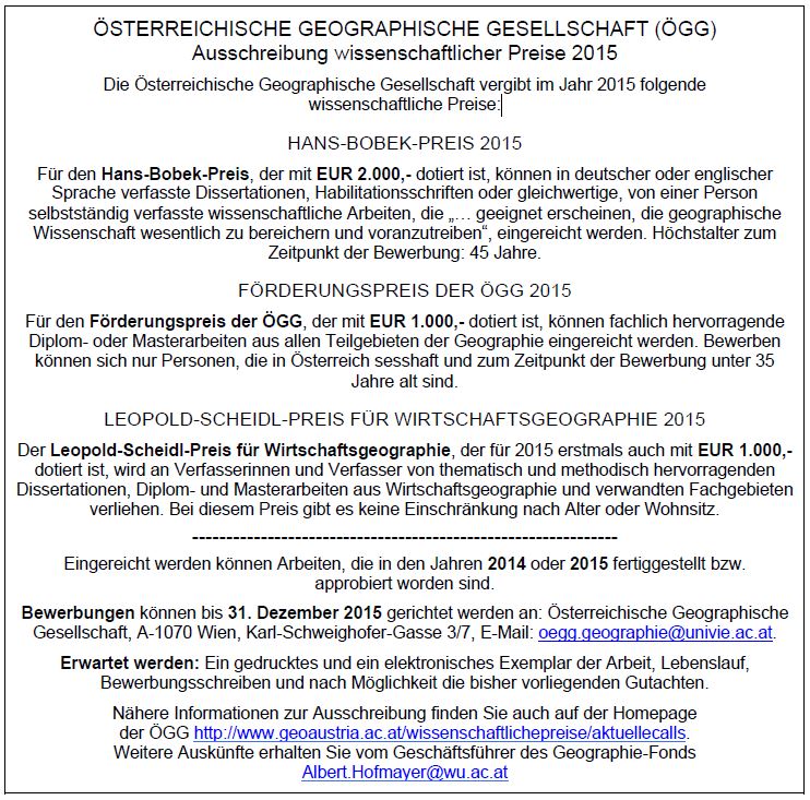 Universität Graz Umwelt-, Regional- und Bildungswissenschaften Institut für Geographie und Raumforschung Neuigkeiten Wissenschaftspreise der ÖGG